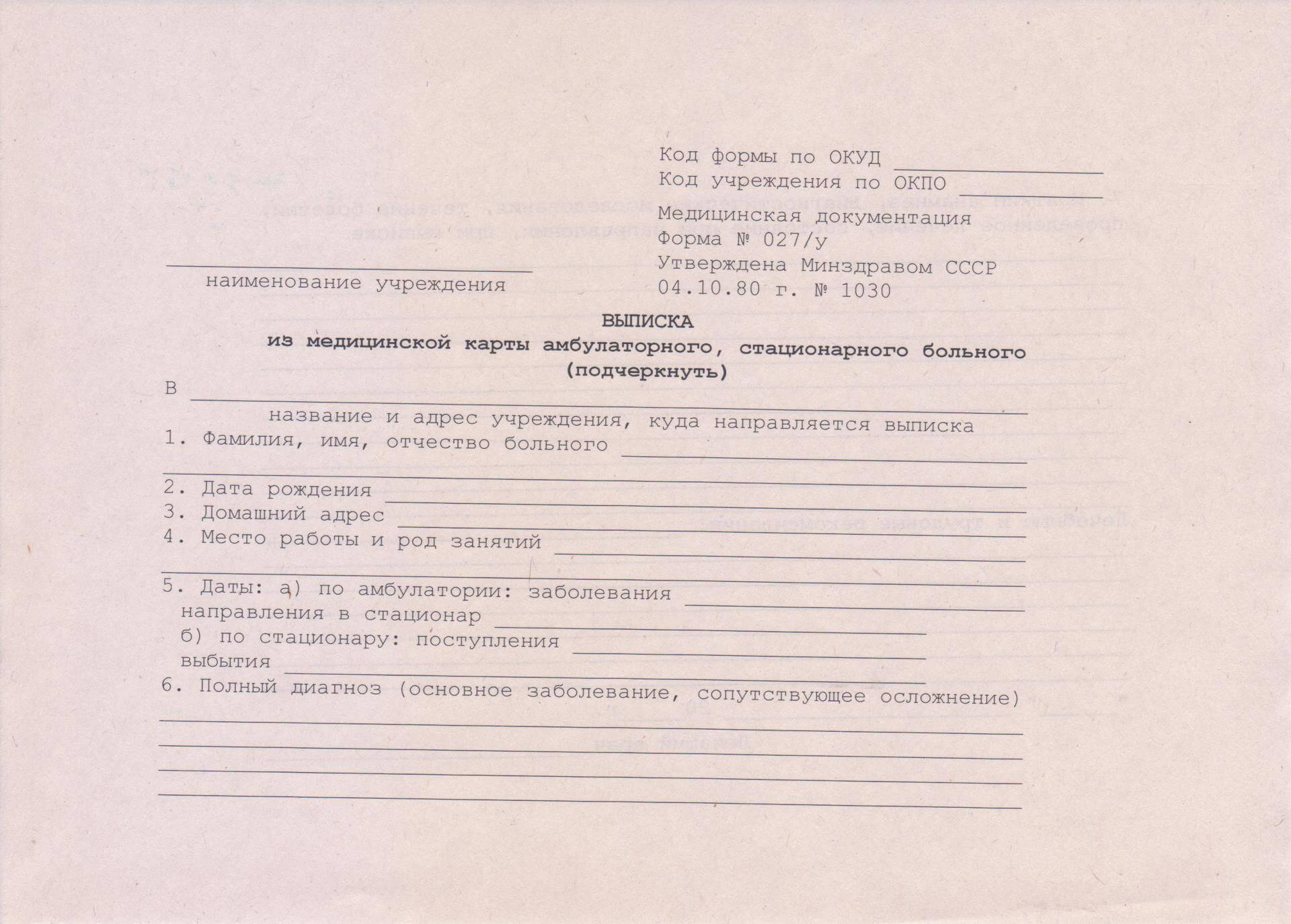Что будет написано в справке 027/у?